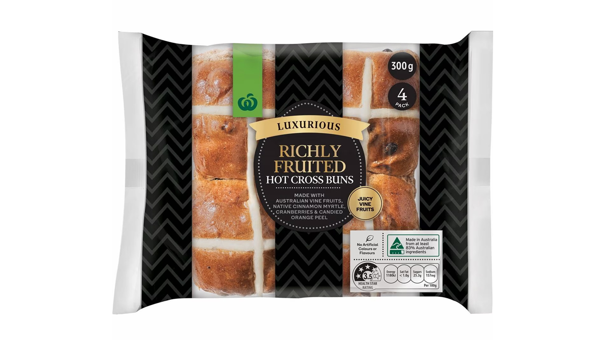 "These buns came in second place, with our experts praising them for their moist texture and softness," says Rafferty.3. Woolworths Luxurious Richly Fruited Hot Cross Buns