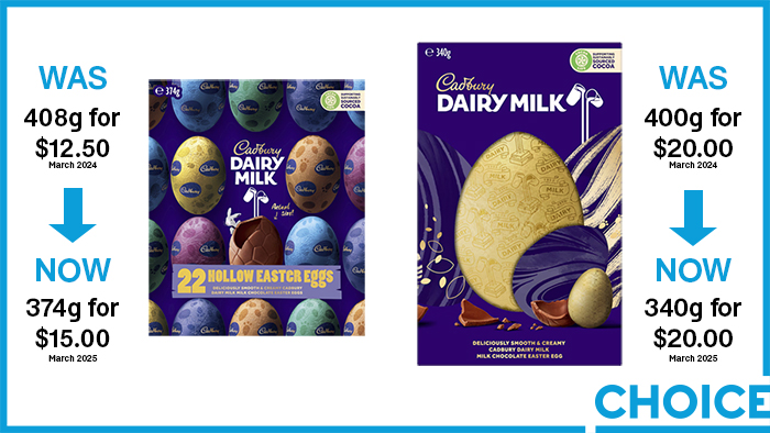 “Last March, retailers were selling a 24 pack of Cadbury Dairy Milk hollow chocolate eggs with a recommended retail price of $12.50. However, a new version of the product only contains 22 eggs, with the price increasing to $15.00. That means consumers are paying 31% more per 100g of chocolate than they did last year,” says Kennedy.