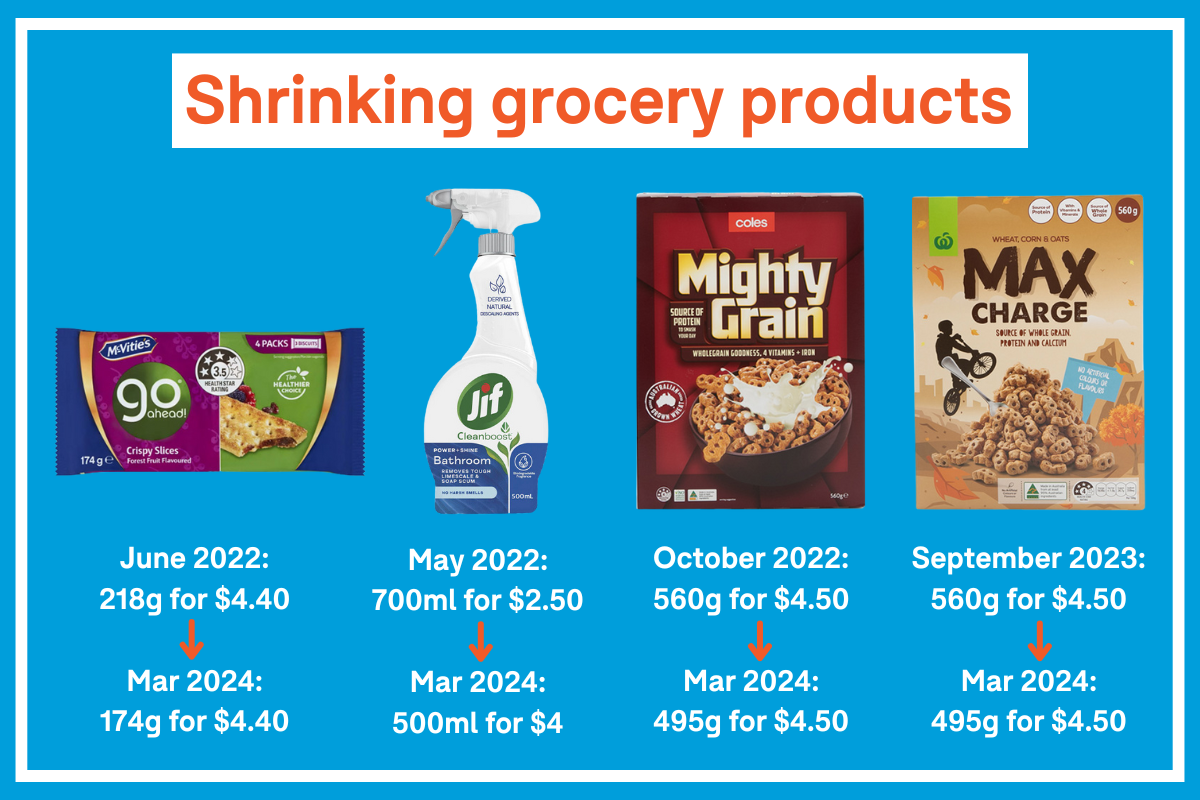 Image: Shrinkflation examples from CHOICE’s 2024 shrinkflation investigation.