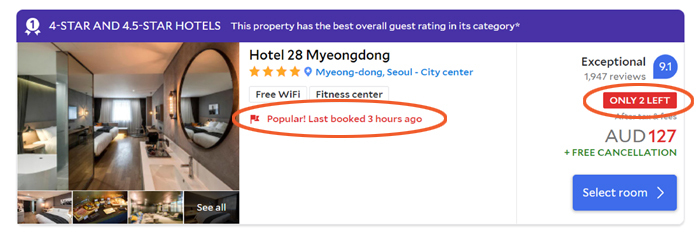 Instilling a fear of missing out, scarcity cues create a sense of urgency for you to buy or spend more than you intend to, through messages about items being ‘low in stock’ or ‘in demand’, and countdown timers. Yet there’s no way you can verify whether these claims are genuine or not.