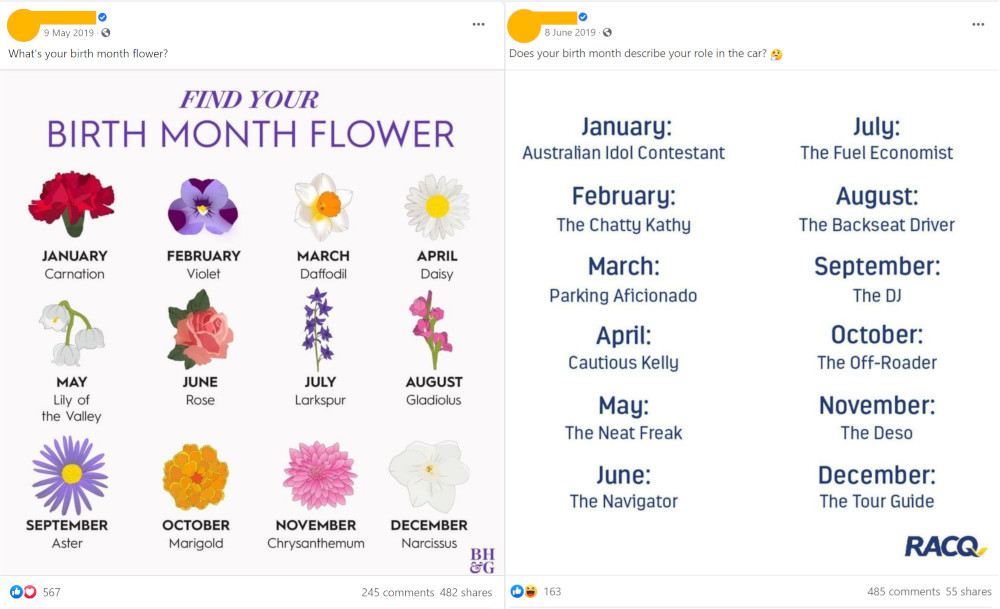 Some innocent but ill-advised quizzes get you to proudly announce your information, such as “Can we guess your exact birthday in 20 questions?” or “Can we guess your pet’s name?”