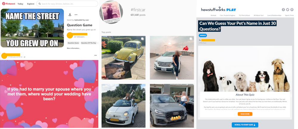 Some rely on inadequate privacy settings on your accounts, while others get you to freely offer seemingly-innocuous info in the name of fun.