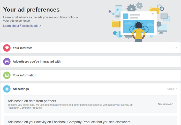 Alternatively, you can go to the Your interests tab and make advertisements more relevant to you by pruning topics you don't like.