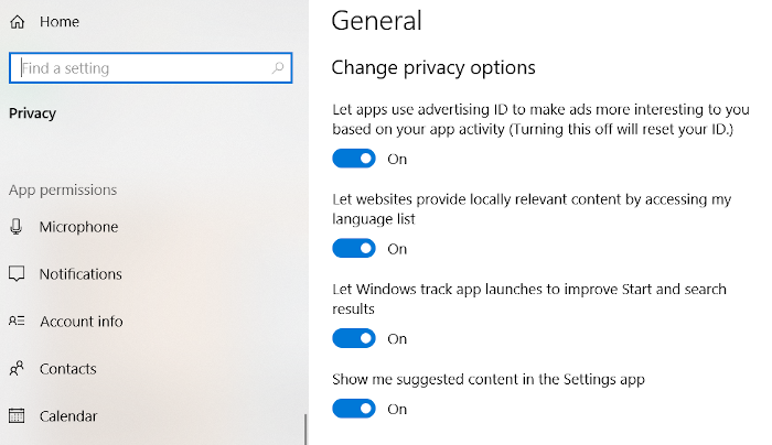 You can also adjust what permissions you give to Windows 10 itself at the top of the same menu, under Windows permissions.