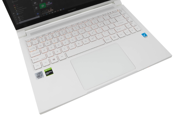 The keys themselves feel soft to press, but with crisp responsiveness, and very good 1.55mm key travel, and are not at all loud. The Corning Gorilla Glass trackpad is huge, and not only felt smooth, but performed smoothly and accurately in our tests. There’s also a fingerprint reader built into the power button for one-touch logon.