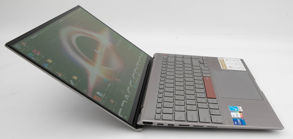 The 14-inch glossy touchscreen is a stunner. OLED screens are noted for their brilliant colours and deep blacks, and this Zenbook also has excellent colour balance and viewing angles, and no backlight bleeding when watching movies in full screen.
