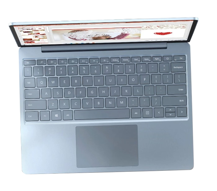 The Surface Laptop Go is light enough to comfortably use in your lap for long periods, but it can become noticeably warm on the underside near the centre when the processor is under heavy load. The internal fan can be heard when the CPU load is high.