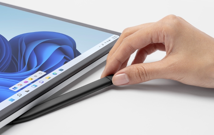 We found that the Surface Slim Pen 2 can be charged wirelessly by the Surface Laptop Studio, but we couldn’t find information about how to do this in its package, nor on Microsoft’s site. We found the magnet under the front lip of the laptop to be the strongest point of attachment for the Slim Pen, and when we checked the system settings for devices, we saw that it was charging – meaning it detected and paired it. Some documentation about this in the package would be useful.