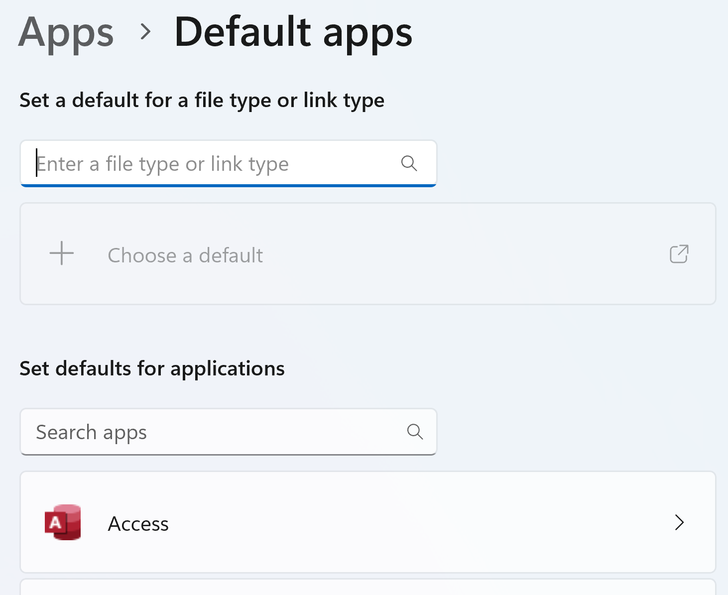 To set specific link types, there’s the Set a default for a file type or link type search bar at the top of the page. But you can also wait until Windows 11 prompts you the first time a new link type is opened.