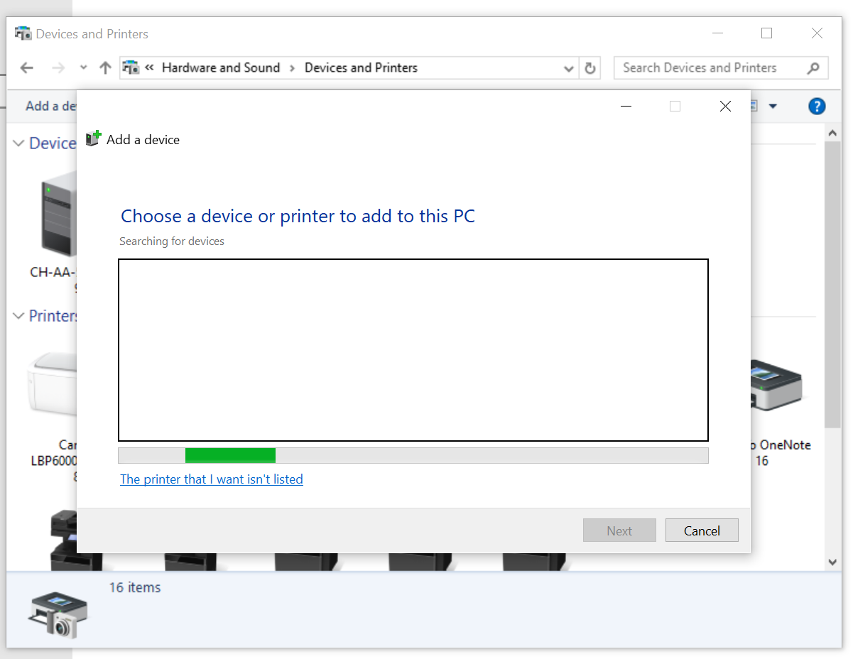Windows 10 should easily find any printer connected to the same local network via Wi-Fi.