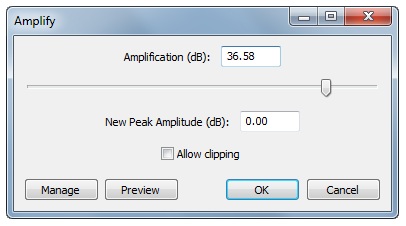 - Audacity should automatically generate an ideal amplification level, but you can increase/decrease this by moving the slide bar. However, Audacity won’t let you increase the volume beyond the point of damaging the audio, unless you tick Allow clipping. We don’t recommend this.