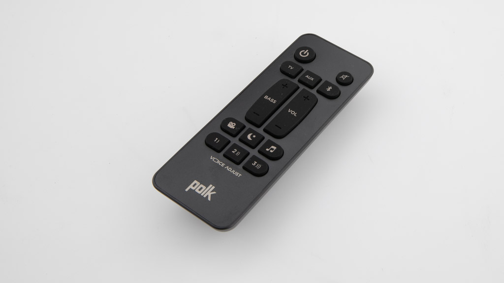 Some remotes, like the Polk model pictured here, have dedicated buttons for each sound mode. Others have one button to cycle through the options.