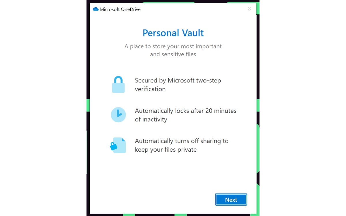 - Setting up OneDrive's encrypted Personal Vault