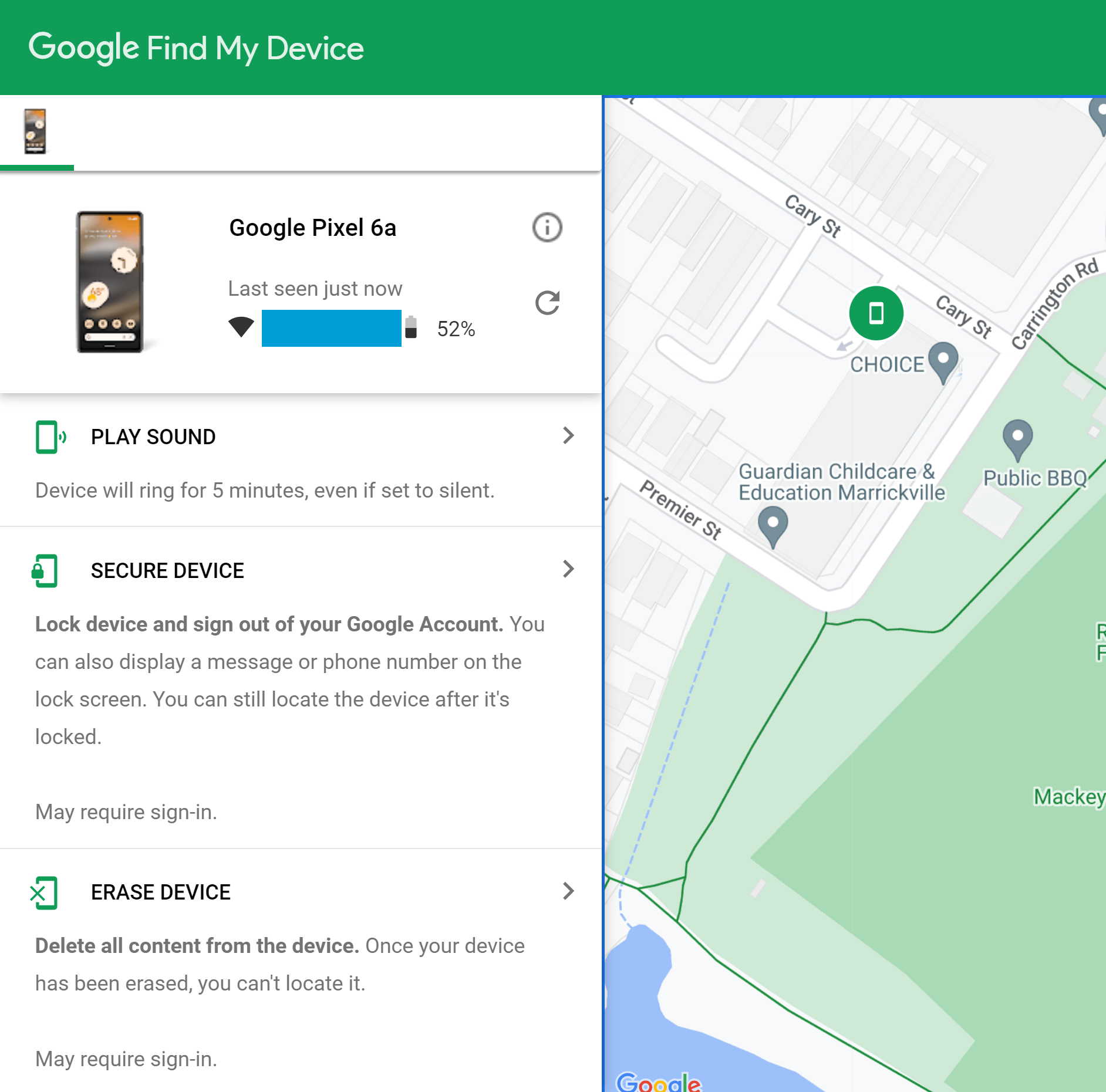 To check, open your App Tray and type “find” (sometimes the app is called “Find Device” in the app tray, but it will display the full “Find My Device” name when opened). It should prompt you to sign in.