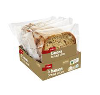 - Coles Gluten Free Banana Bread Slices (5 pack) $1.56