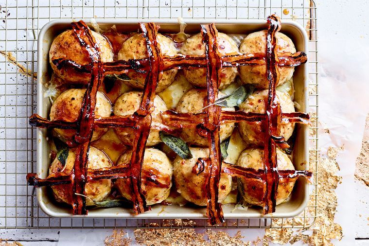 If you’re not a Vegemite fan but you need to give your sweet tooth a rest, there’s also cheese and bacon hot cross buns, complete with crispy bacon crosses.