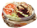 - Seared Chicken Tandoori Wrap 1340kJ, 7.5g fat, 596mg sodium