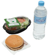 - Hamburger with Garden Salad 1414kJ, 11g fat, 836mg sodium
