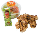 - Grilled Chicken Breast Strip pack (four strips) with Garden Salad (with dressing) 1188kJ, 11.4g fat, 698mg sodium