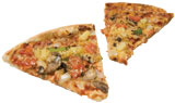 - Thin and Crispy Veggie Supreme Pizza (2 slices) 1162kJ, 9.2g fat, 612mg sodium
