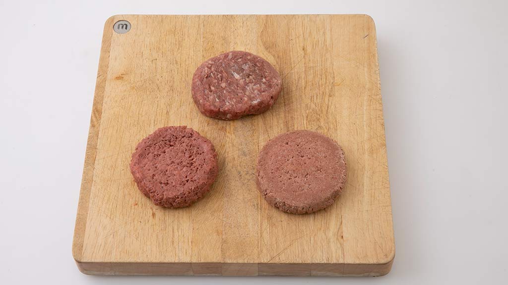 Burger patties and minces were tested separately. We pan fried all of the patties according to pack instructions. We prepared a Bolognese sauce with each mince, using the same ingredients and following any cooking instructions on the pack. We included a beef patty and a beef mince Bolognese (made to the same recipe) for comparison.