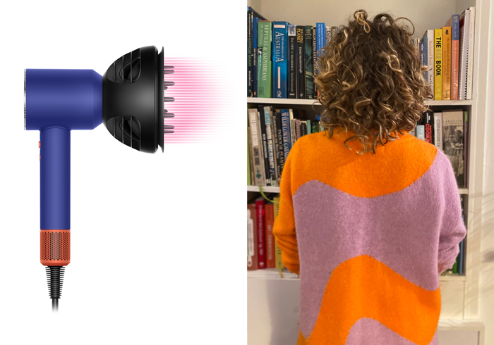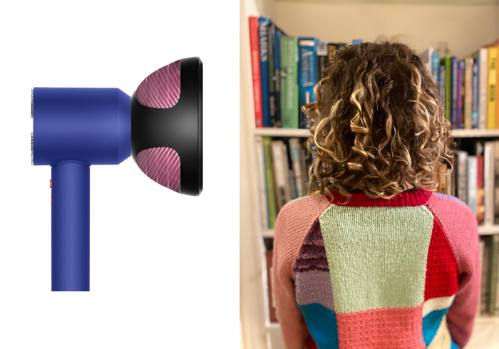 Left: The Dyson Nural Wave+Curl diffuser. Right: the results.