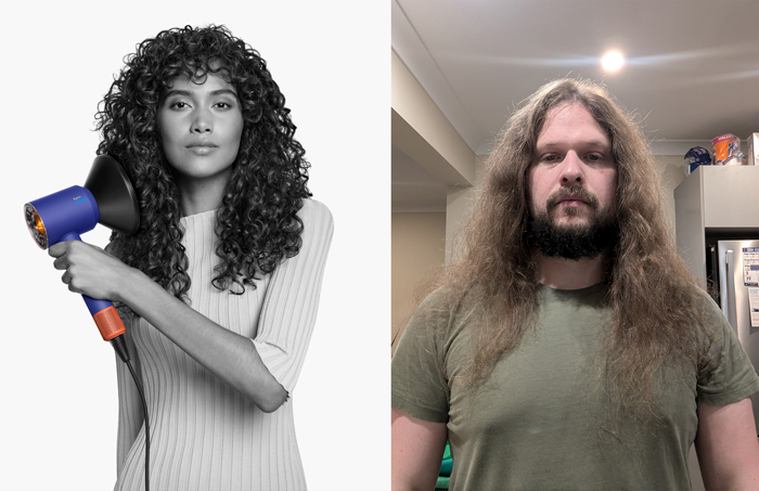 Expectation vs reality: the Dyson Nural diffuser didn’t do much for Pete’s hair.