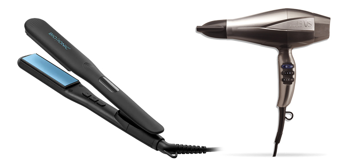 Pete’s weapons of choice: a hair dryer to start and a straightener to finish the job.