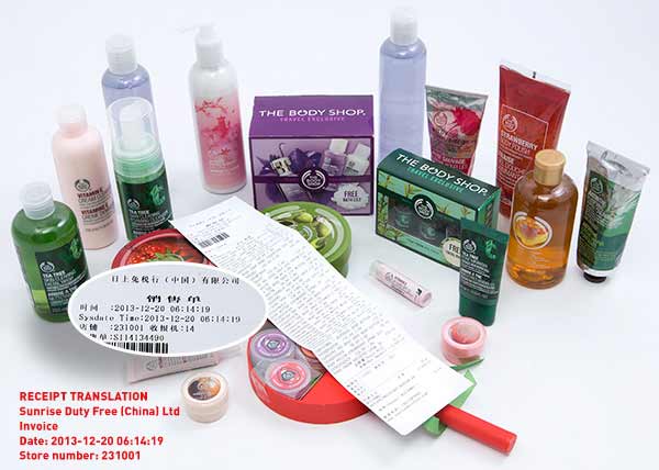 - CHOICE purchased The Body Shop products in Chinese international airports.