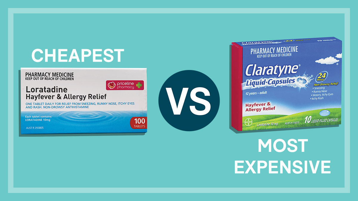 Priceline Loratadine (100 pack) costs 40c per pill, a whopping $1.86 less per pill than a 10 pack of Claratyne at Amcal, which comes in at $2.26 per pill.