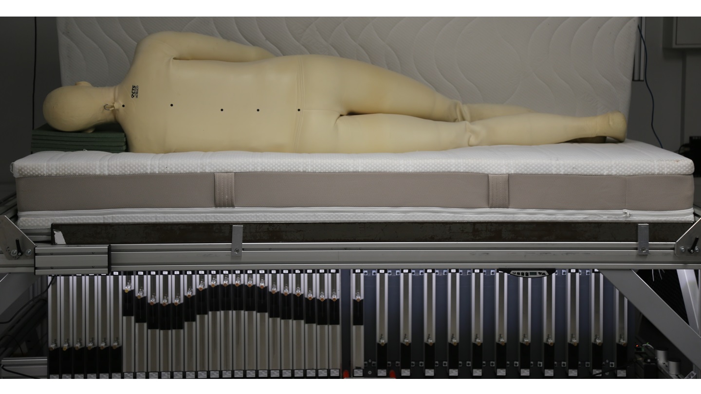 Our tests assess comfort and support in dorsal (back) and lateral (side) position. We’ve use dummies that comply with two body types – the 5th percentile (1.55m/55kg) and 95th percentile (1.9m/100kg) heights and weights. This range of the bell curve covers 90% of the general population and is similar enough to allow our current results to be comparable with previous tests.