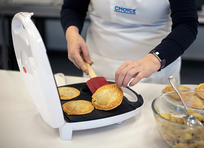 We give the $29 Kmart Anko pie maker the thumbs up. In our lab tests, our experts rated it ‘very good’ for general performance and ease of use. It’s cheap, versatile, and does the job well, creating golden snack-sized pies in under 15 minutes. While our oven-baked pies turned out more flaky and golden, the pie maker was quicker and is easy to use. If you’re looking for a quick and easy way to feed hungry teenagers or use up leftovers, this is a good option.