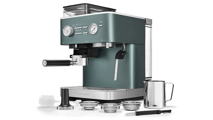 It’s common for KitchenAid appliances to have a sleek and stylish design and come in a range of colours. The Semi Automatic Espresso Machine is available in five colours – juniper (green), porcelain, stainless steel, candy apple (red) and cast iron black.