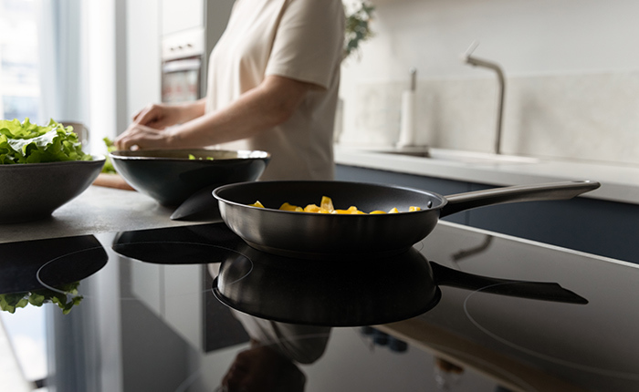 With induction, because the heat comes from the cookware itself rather than the cooktop, your cookware reaches the desired temperature more quickly, cooking your food faster.
