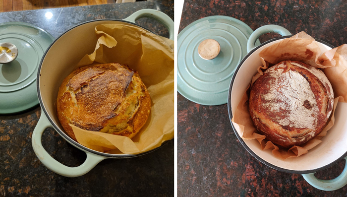 First, the sourdough. The Aldi pot did not disappoint, turning out a more or less identical loaf to the one cooked in the Kmart pot.