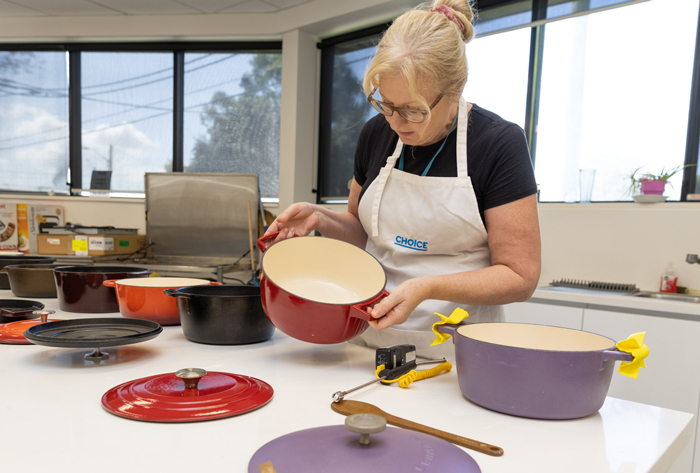 The CHOICE team put the Crumble cast-iron Dutch oven to the test alongside other popular Dutch oven brands, including Le Creuset, Chasseur, Staub and Kmart, assessing each pot’s performance when cooking a range of dishes, such as brown rice, bolognaise and chilli beef. The cooking tests assess factors such as how well the pots maintain and distribute heat, how well they avoid discolouration, and how evenly they cook. The team also give scores based on how easy the pots are to use, their durability and overall performance. See all the results of our Dutch oven reviews.