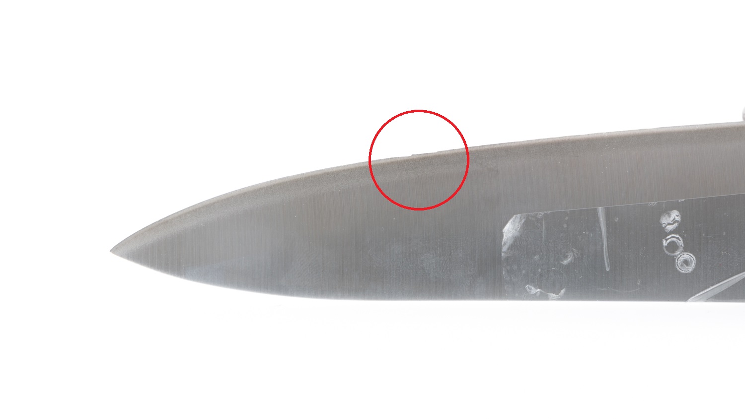 Tip: The front third of the blade working backwards from the point, used for smaller slices.