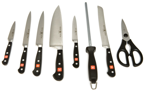 Knives need to be sharpened from time to time to keep their cutting edge fine. While stone sharpening is the best method, you can also use honing steels or pull-through sharpeners. But eventually the knives will need to be professionally sharpened. Most good cookware shops offer this service.