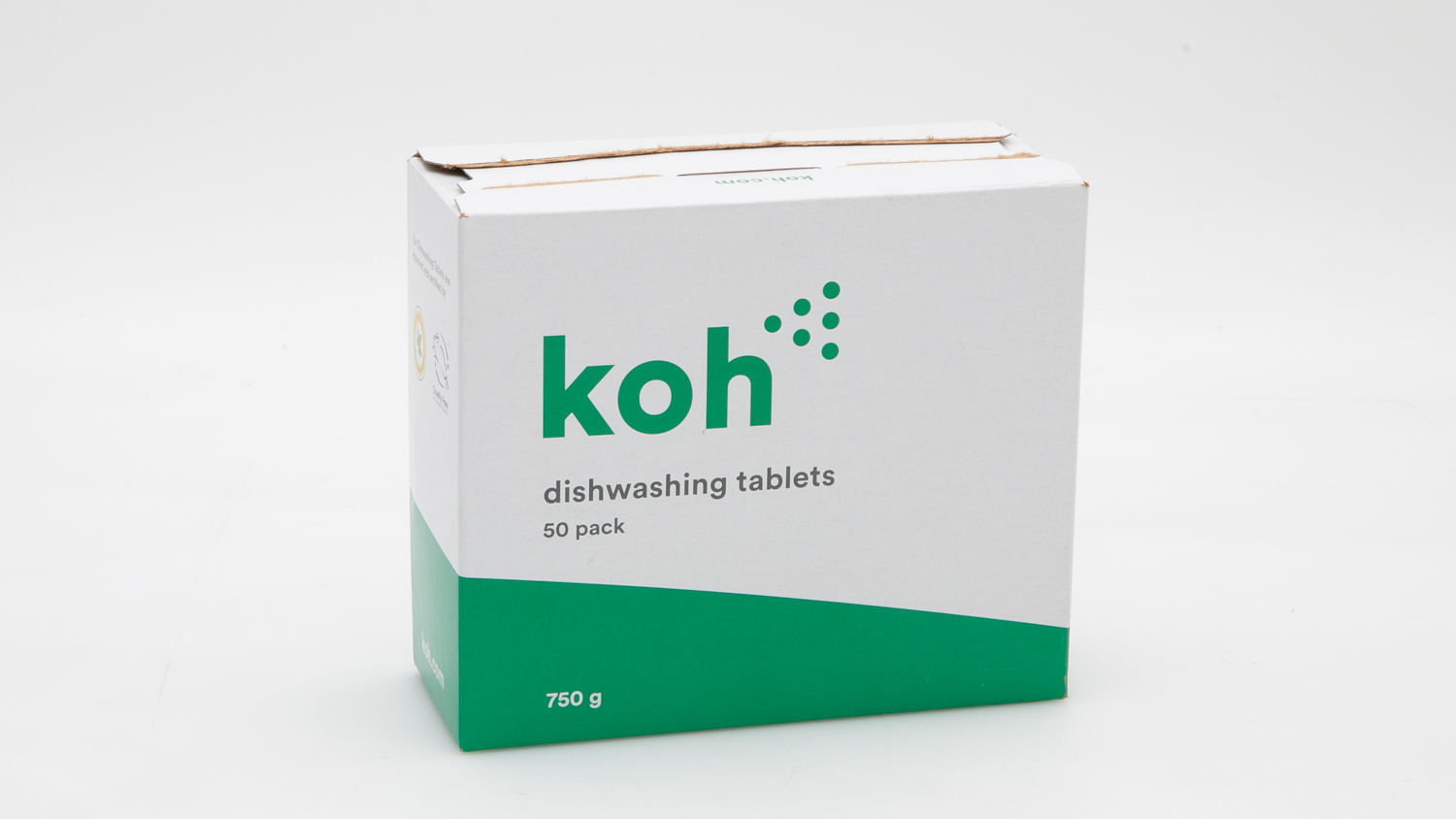 Koh’s performance in our dishwasher detergent tests was a bit disappointing. It shares last place for all the tablets we tested with cheap-as-chips dishwashing tablets from Woolworths.