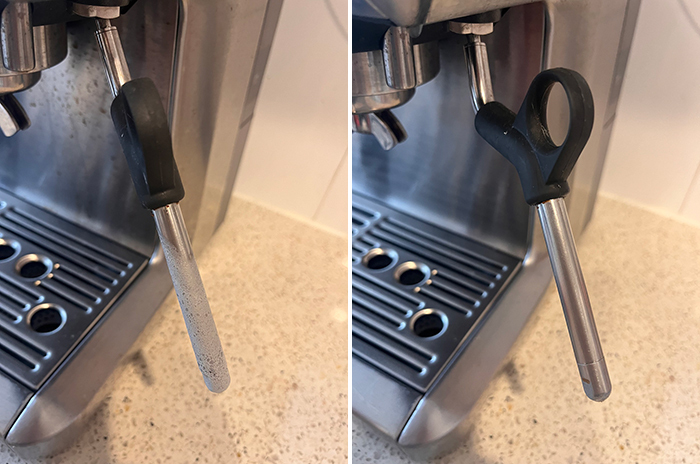 I also tried it on one of our least favourite cleaning jobs: the steam wand on our coffee machine. When you don’t wipe the steam wand straight after using it, the milk gets almost ‘baked’ on due to the heat and can be difficult to remove.