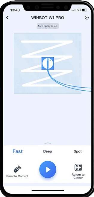 The app lets you switch between fast, deep and spot clean, pause cleaning, or you can control the Winbot’s direction so you can move it to a more appropriate area for removal.