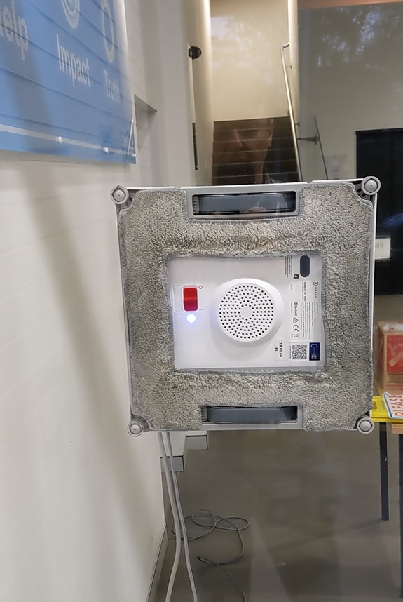 To start cleaning, you simply turn the power switch on and attach it to the window. You can press it firmly onto the glass (if using it on frameless glass it has to be 10cm away from the edge) until you hear a voice prompt, or press the start/pause button.