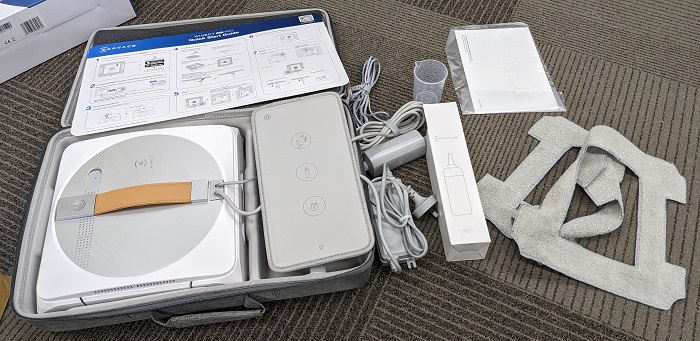 In the box you also get 230mL of window cleaning solution in a squeeze bottle, two mopping pads, a measuring cup, instructions (including a quick-start guide) and a handy zip-up carry case.