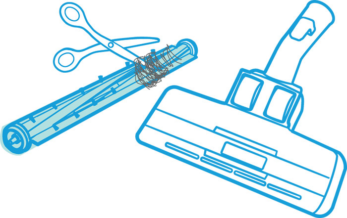 - Clean the roller head and bristles of any dust, lint and hair – a small brush can help with this. If the roller is very dirty, you can often wash it under a tap. Make sure it’s dry before you re-install it.