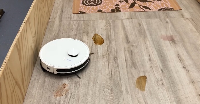 Another part of this test is to see how well the robot avoids carpet (if it mops carpet, this can cause stains). Some robot vacuums don’t have automatic carpet avoidance capability while mopping, and in those cases we follow the manufacturer instructions on how to set a defined cleaning area that will avoid the carpet.