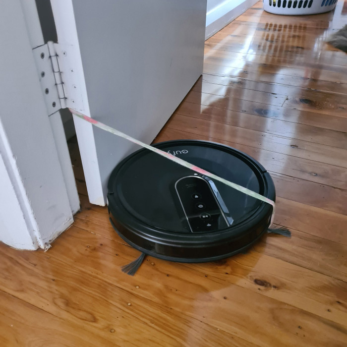 They frequently get caught under furniture, on door thresholds or thick rugs, or accidentally ‘eat’ things like shoelaces, phone chargers and pet toys, which usually stops them in their tracks and requires some tricky de-tangling.