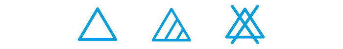 - A triangle with two slanted lines means use a non-chlorine or oxygen-based bleach. Alternatively, the label may state “No Chlorine Bleach”.