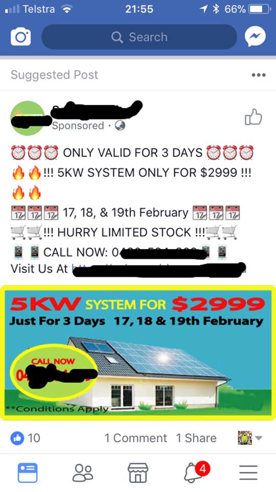 An example of a solar ad on social media. Image: Andre van der Berg.