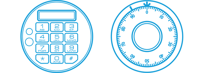 - Digital combination locks, with a keypad and display, offer more flexibility and are generally the easiest option for home safes. You can set the combination you want and change it from time to time as needed, and you don’t need to add another key to your key ring. They can also include other features such as a time out after too many failed attempts to enter the code. On the downside, codes can be forgotten, and electronic locks can fail if the battery dies or the electronics are poorly made.