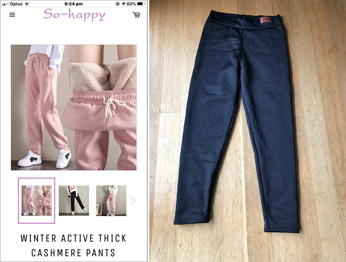 She had paid a total of $68.58 for a pair of tracksuit pants, including shipping, from online retailer So Happy. The pants she received were completely different from the ones promoted on So Happy’s website.